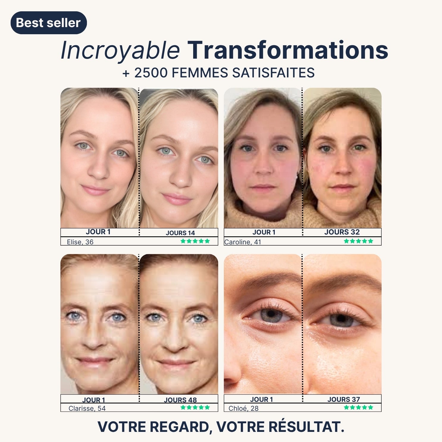 Vous pouvez constater une réduction visible des cernes et des poches dès la première utilisation.